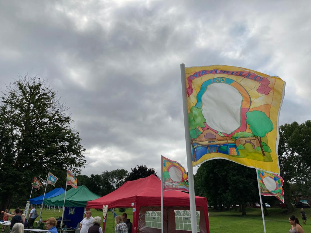 Exploring the 100 year heritage of the Portobello Housing Estate and the associated history of Castle Grove Park and 12th century Sandal Castle though the creation of 20 community co-created silk painted flags installed around Castle Grove Park to form a heritage trail on 25 August as part of Portobello 100 Garden Party.